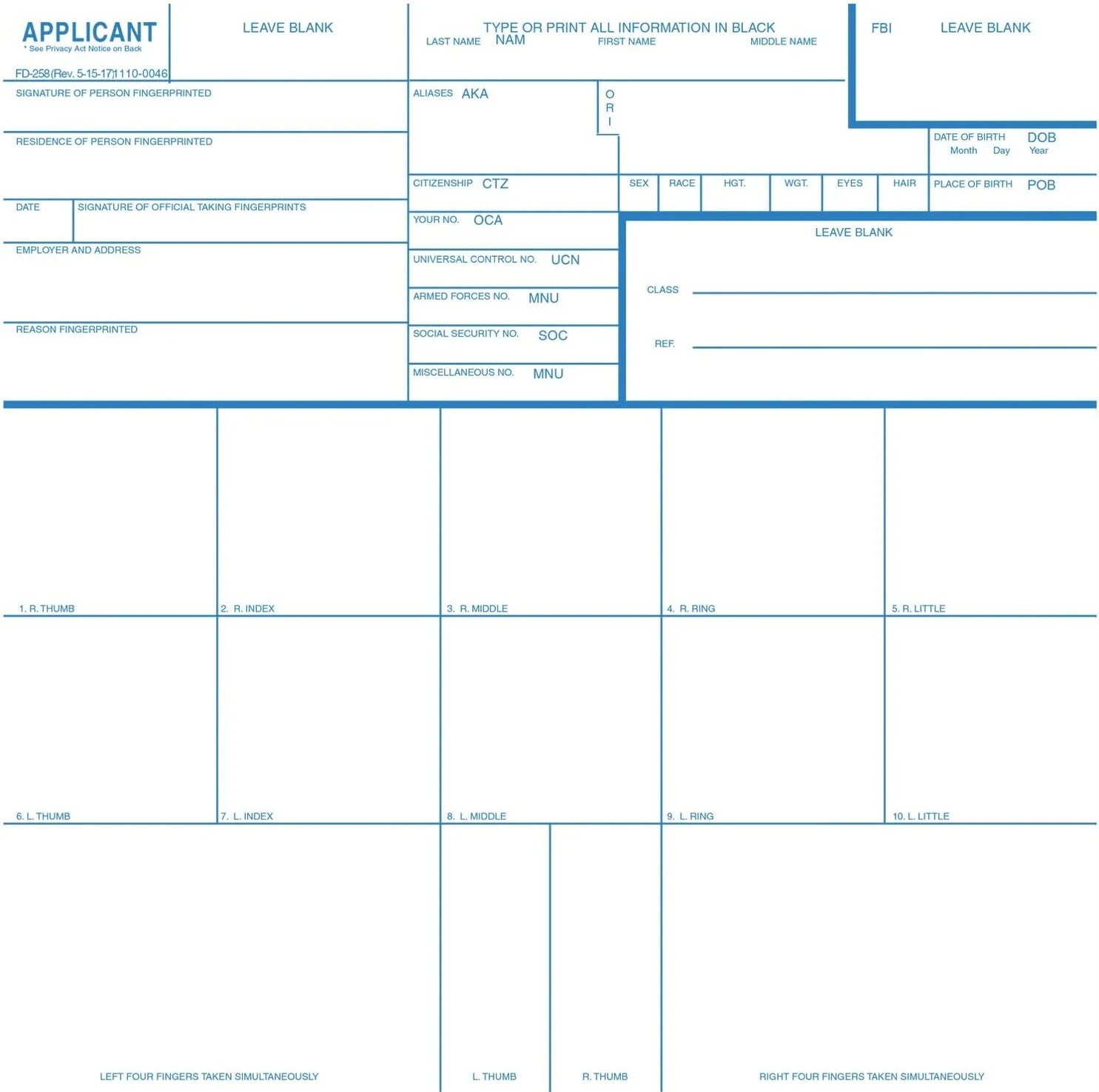 The fingerprint cards we use at OFW
